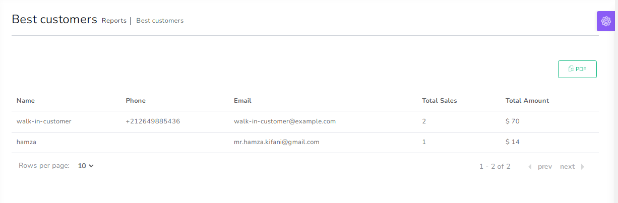 • Generate customer list in PDF